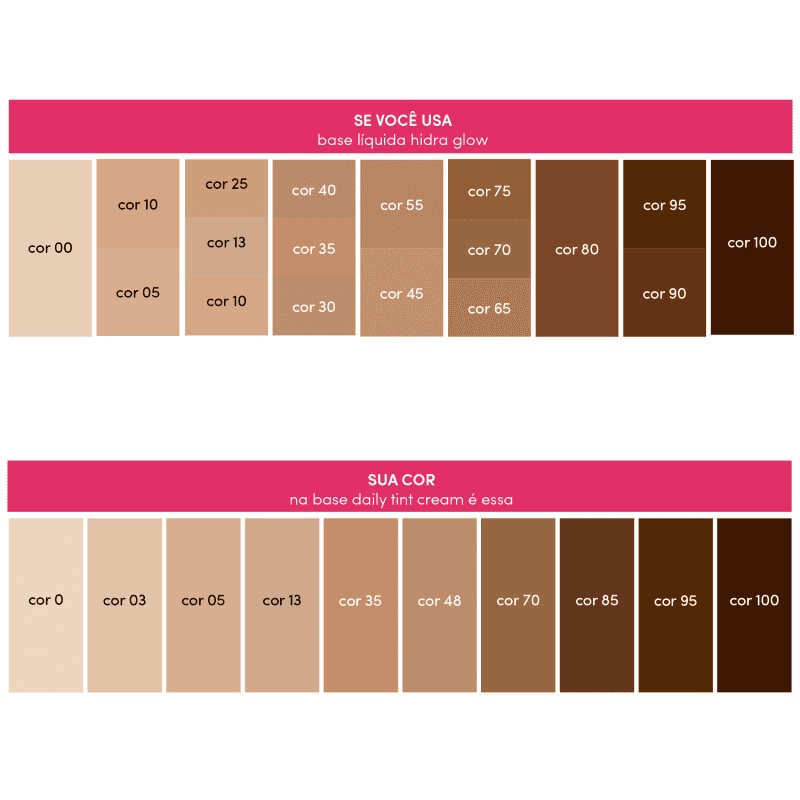 São 10 tons que se adaptam a vários tipos de pele. Dica: você pode combinar com o Corretivo Perfect Match!