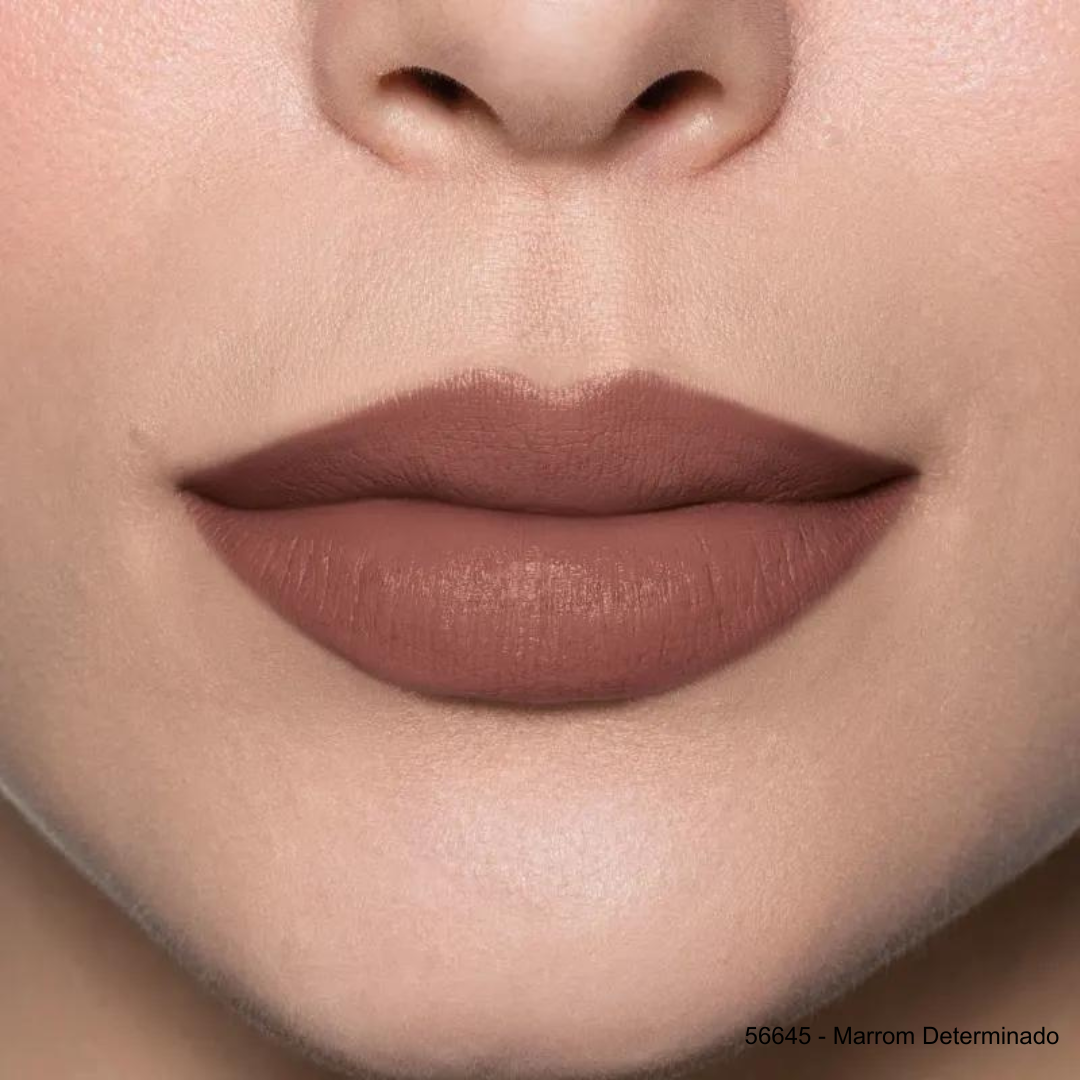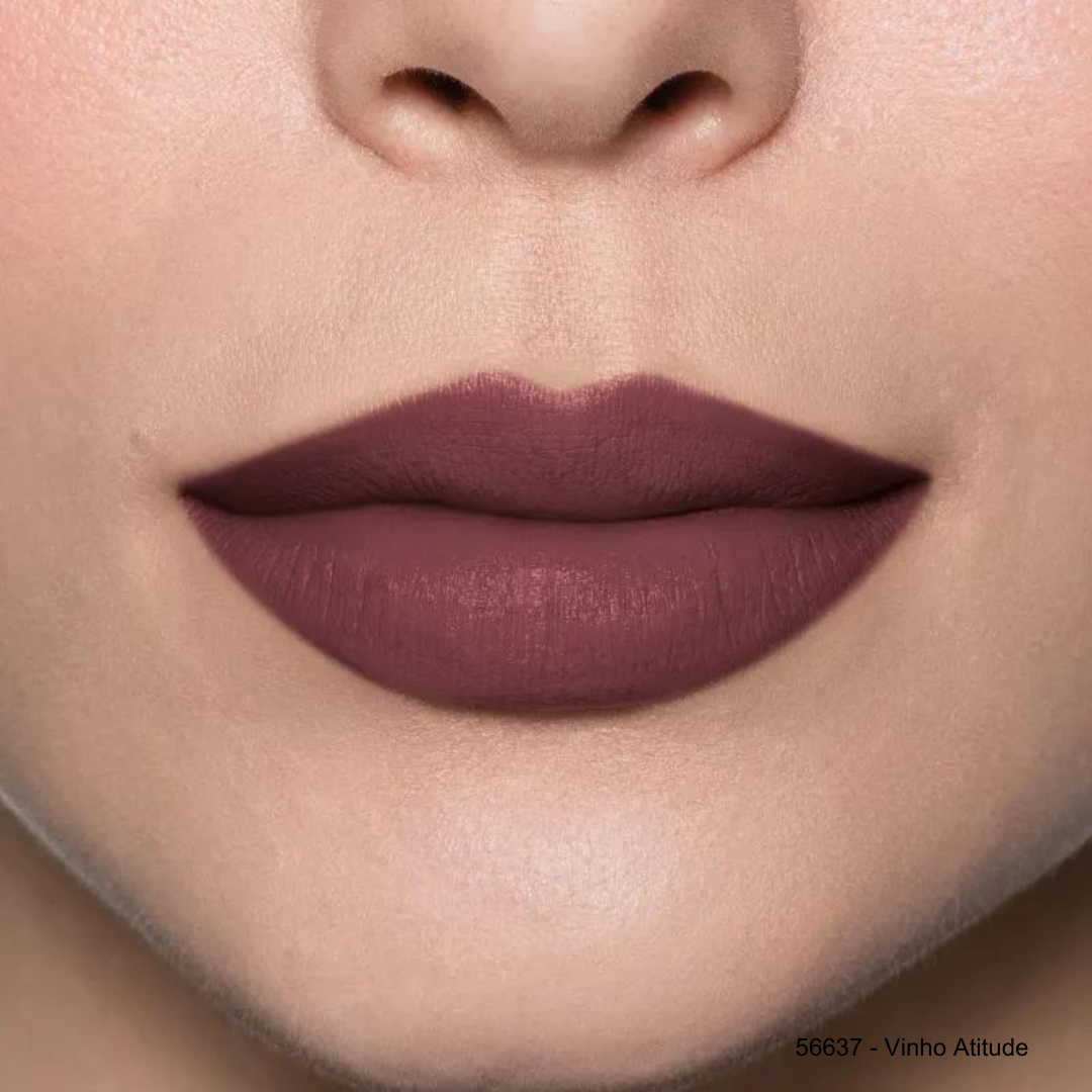Lábios hidratados e coloridos com uma cor sofisticada.